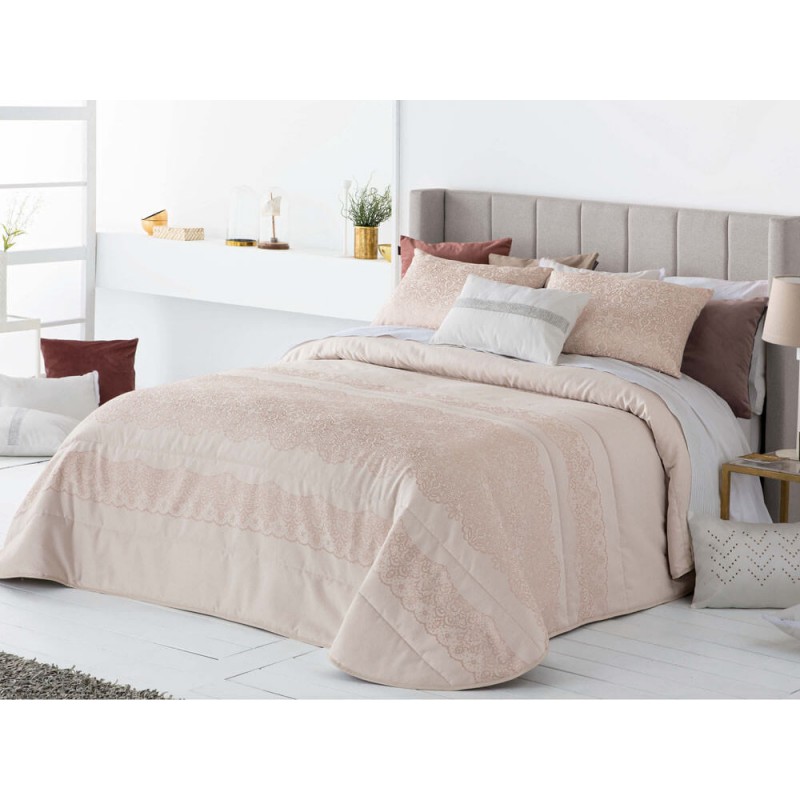 Hiszpańska narzuta na łóżko Fundeco Dora Nude 270x270 z pięknym wzorem, idealna do Twojej sypialni.